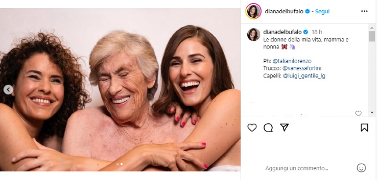 Seguita su Instagram da oltre un milione di follower, Diana recentemente ha stupito tutti con un paio di scatti particolari. Si mostra infatti assieme alla mamme e alla nonna in una foto artistica che le immortala senza veli fino ad appena sotto il collo. “Le donne della mia vita, mamma e nonna” E’ la didascalia.